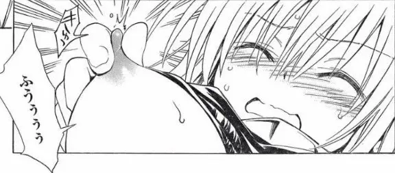 服を破かれ操られた美柑によって乳首を舐められる