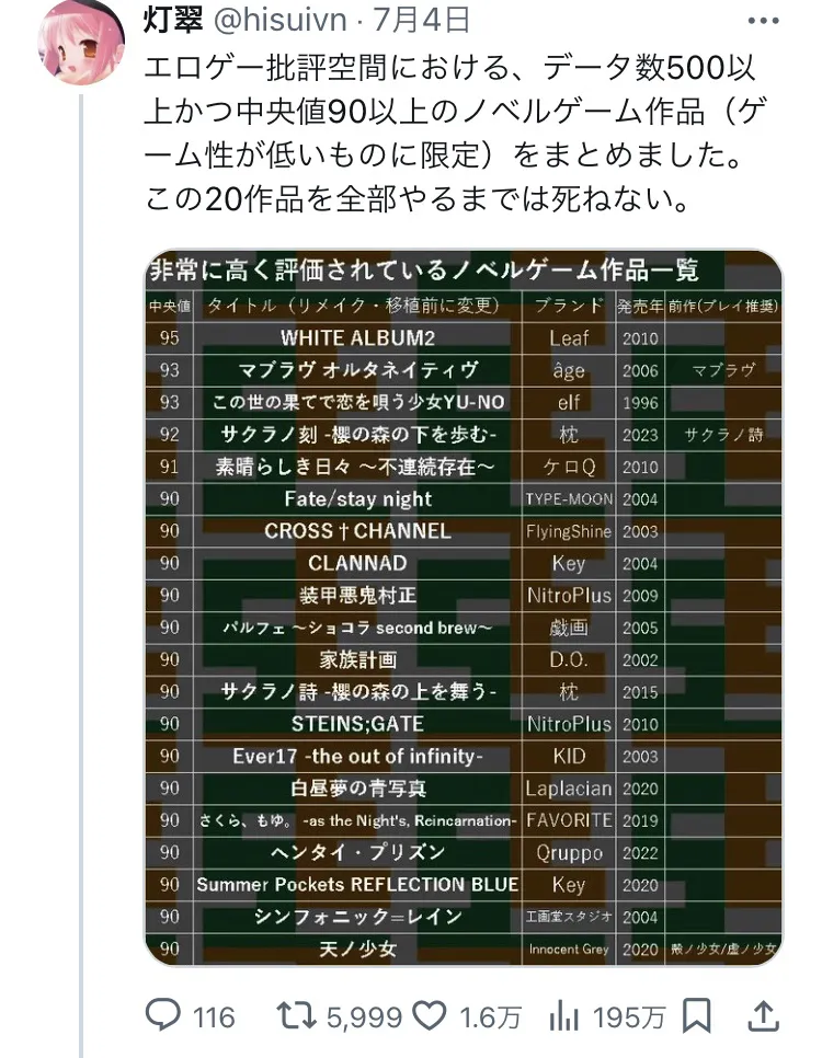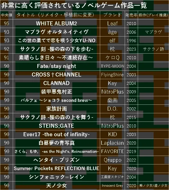 1位のWHITEALBUM2しかやってないが確かにクッソ名作やった