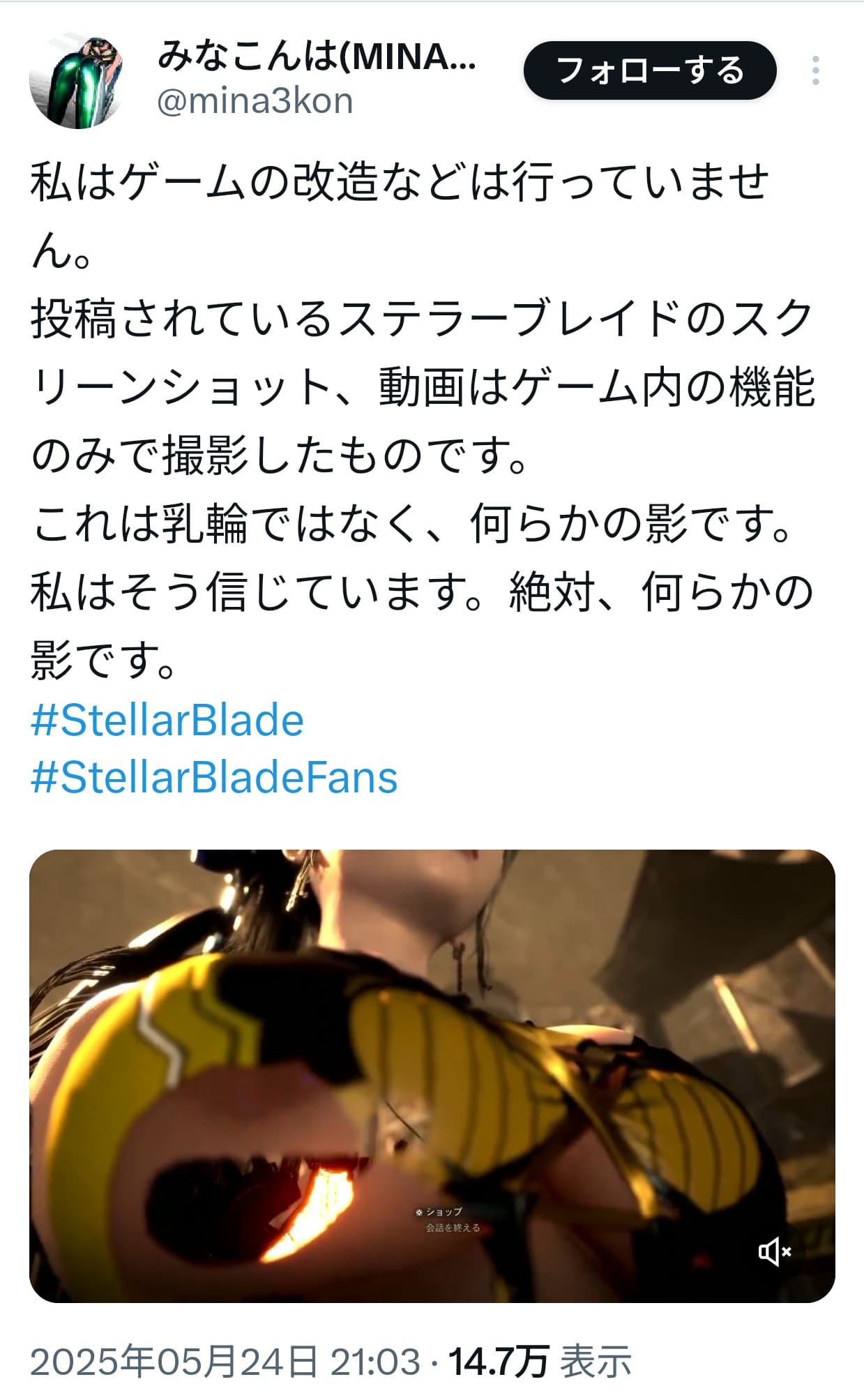 【画像】ステラーブレイド、ズームすると乳輪が見えてしまうwww
